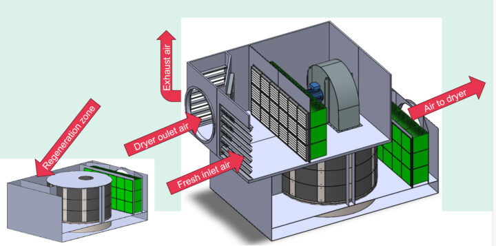 Het ontwerp van de zeolietsorptiedroger is verder verbeterd door het gebruik van een drumconstructie. Deze opstelling maakt het mogelijk om verschillende luchtstromen gescheiden te houden en zorgt voor de stabiliteit die nodig is om mechanische en thermodynamische belasting aan te kunnen. In de haalbaarheidsstudie, genaamd ZeoDry, bleek dat deze opstelling zorgt voor een efficiëntere regeneratie van het zeoliet. De lucht kan daardoor vrijwel volledig op temperatuur worden gebracht zonder dat aardgas nodig is, en de regeneratie kan deels elektrisch gebeuren met groene stroom.